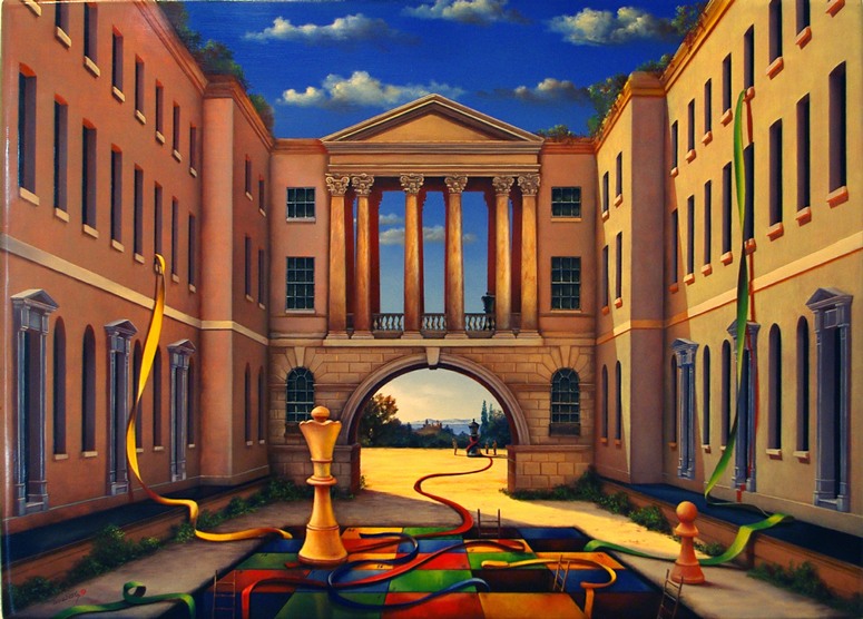 This architecture, as with ‘The Mooncatcher’, is also taken from the buildings at Somerset House in London. Here, the street depicted is adjacent to the main quadrangle at Somerset House and is where the Inland Revenue used to have offices.