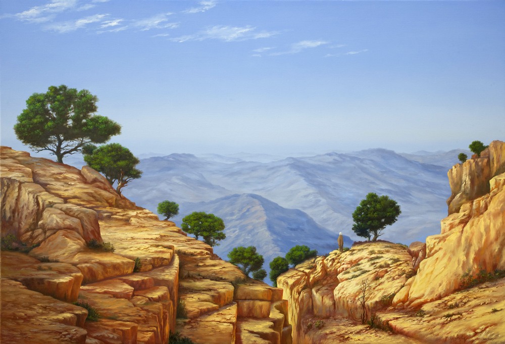 In 1980, as a young artist, I accompanied a team of archaelogists on a three month survey of the S.W.Region of Saudi Arabia. I recorded the trip in sketchbooks. Since then I have, periodically, used some of the sketches as inspiration for paintings such as the one above. Jebel Soodah, in the Asir Mountains , is thought to be the highest point in Saudi Arabia. The views to the distant peaks are spectacular.